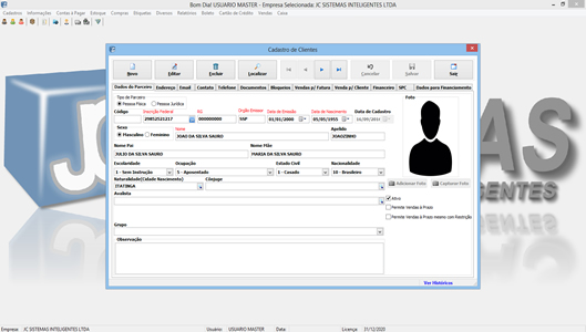 Desenvolvido para o comércio varejista, o JC ERP possui vários módulos em um único Aplicativo, possui também Aplicativo para Celulares e Tablets com Android, Cadastro único chamado Parceiro Comercial(Clientes, Funcionários, Vendedores, Compradores, Fornecedores, Transportadoras e etc..),Contas a Pagar, Contas a Receber,Localização de Frota em tempo real,Gerenciamento de Entregas,Estoque,Compras,Entradas com importação do XML,Vendas,Devoluções,Trocas,PDV,Boletos Bancários com Registro e sem Registro,Etiquetas Diversas, Mais de 100 relatórios etc...